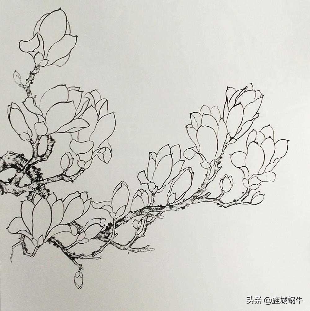 第二步:用同样的方法继续为画面前面的其他玉兰花花瓣进行分染。注意花瓣根部的颜色可稍重一些,突出花瓣的体积感。