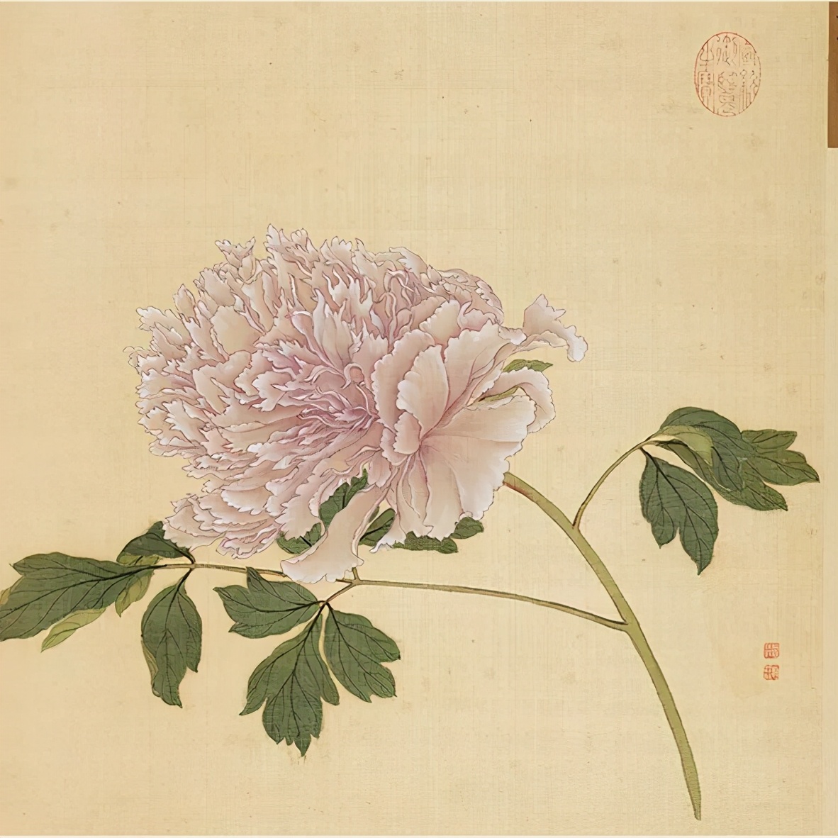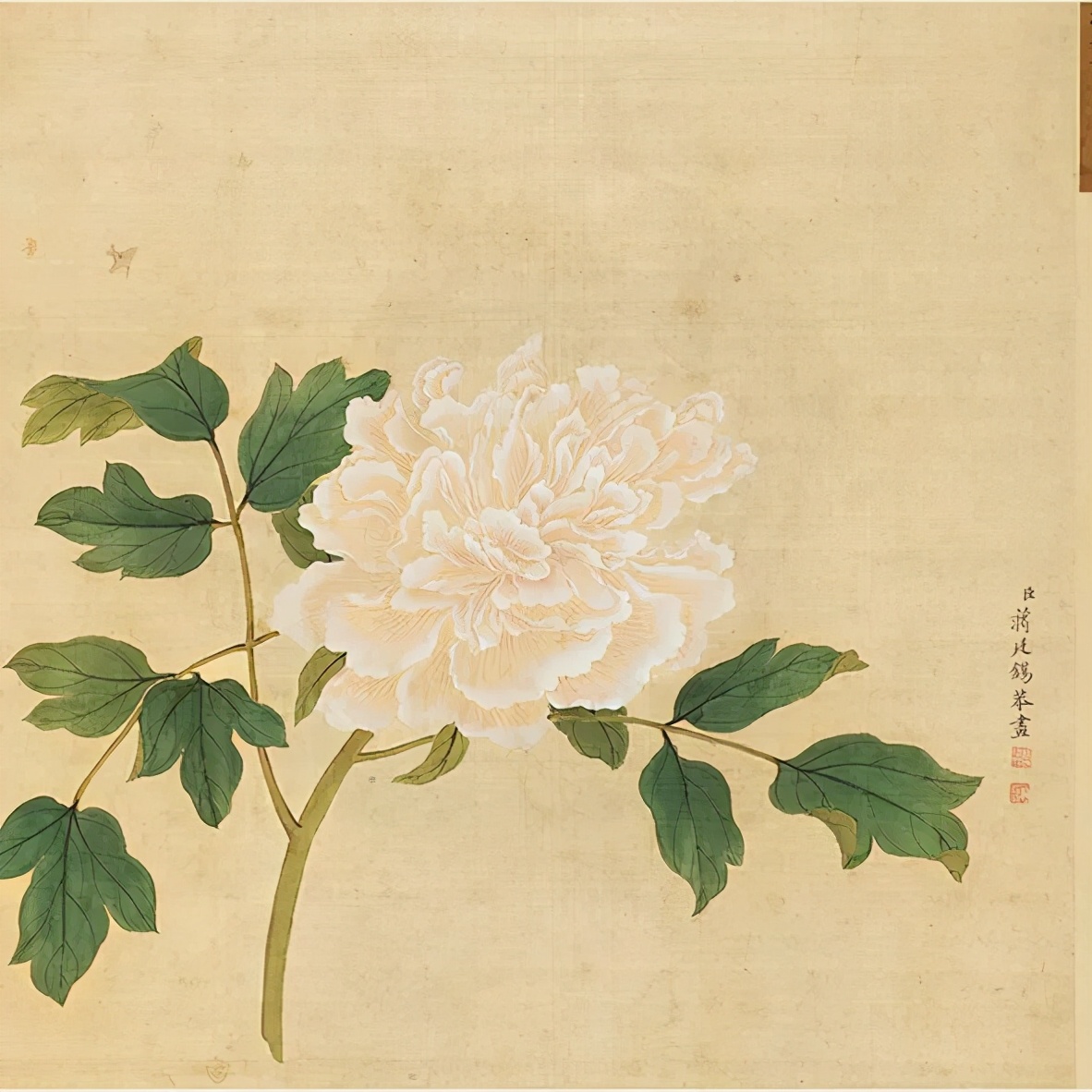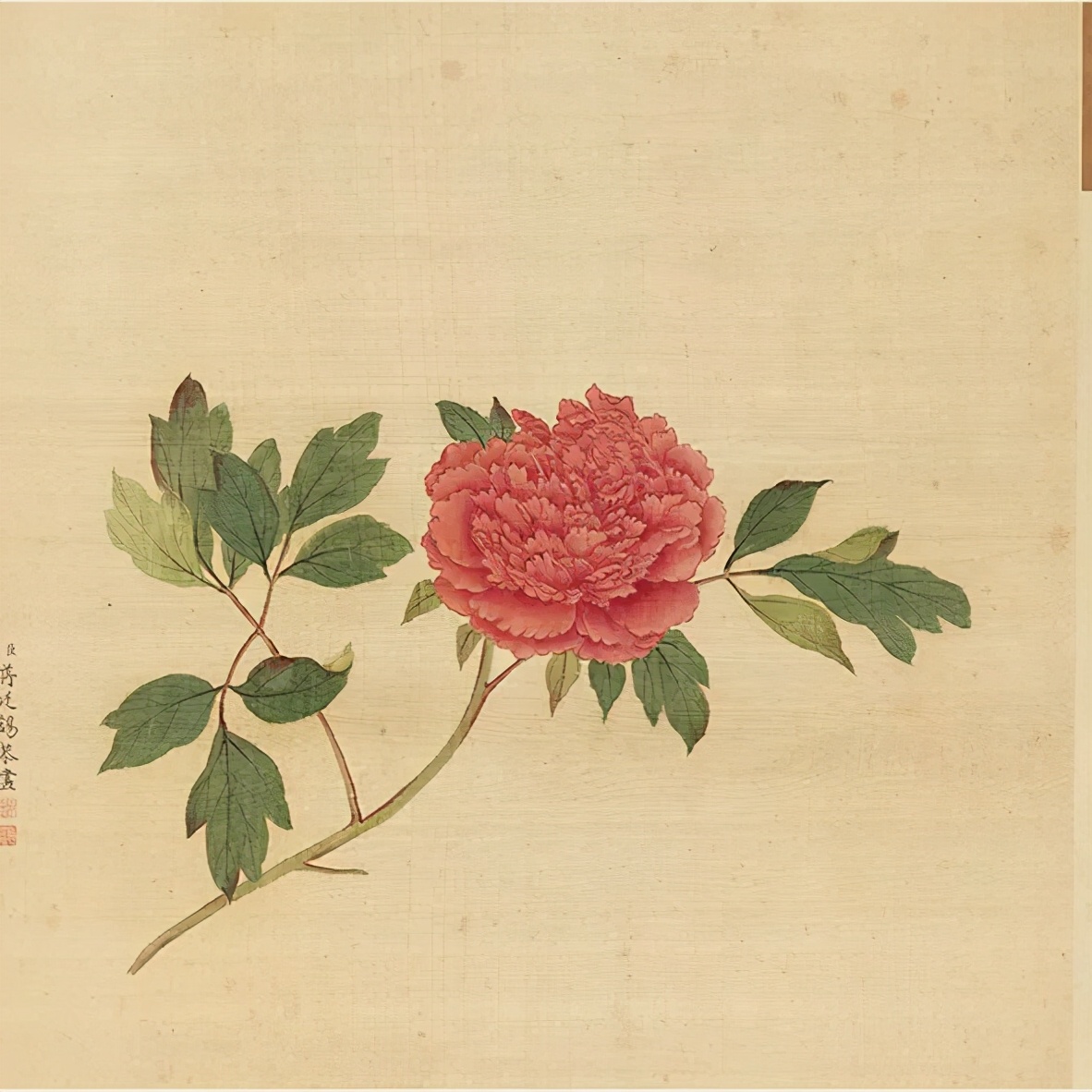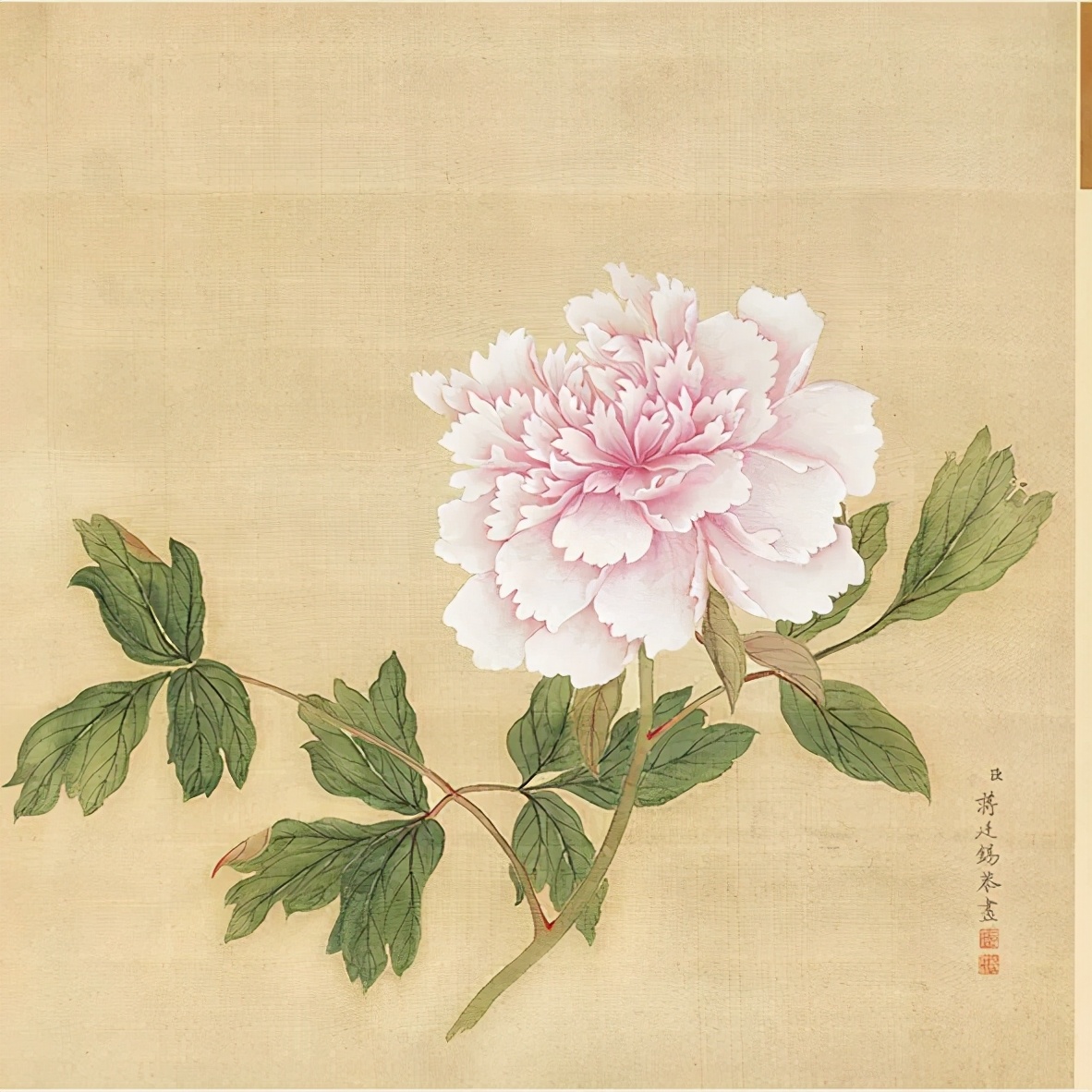 《百种牡丹谱》是蒋廷锡的代表作,在技法上承袭了恽寿平的没骨花鸟画一派风格,同时也具有相当浓厚的宫廷画的表现,可以让我们能够明确的感受到当时宫廷画师的绘画水准。