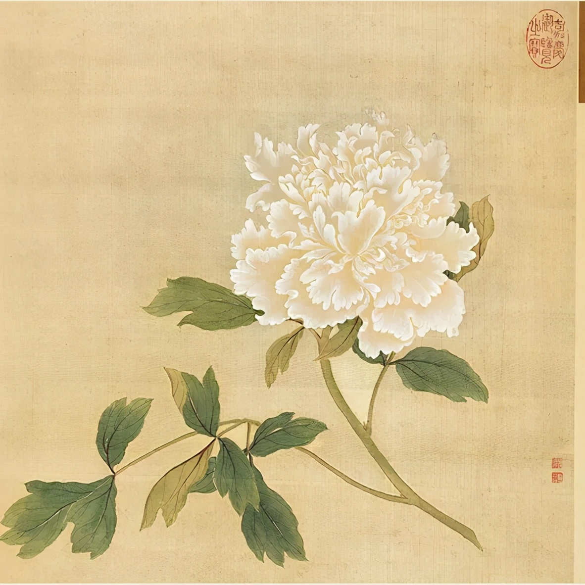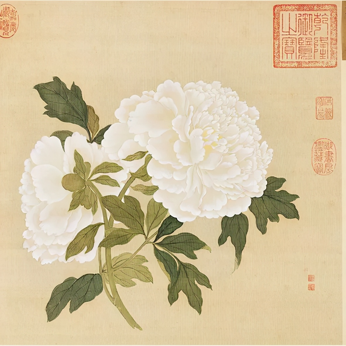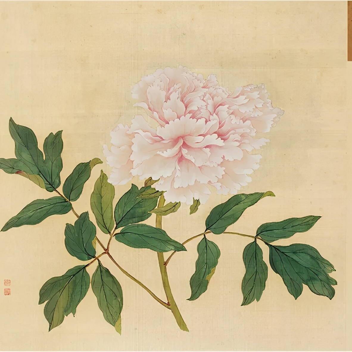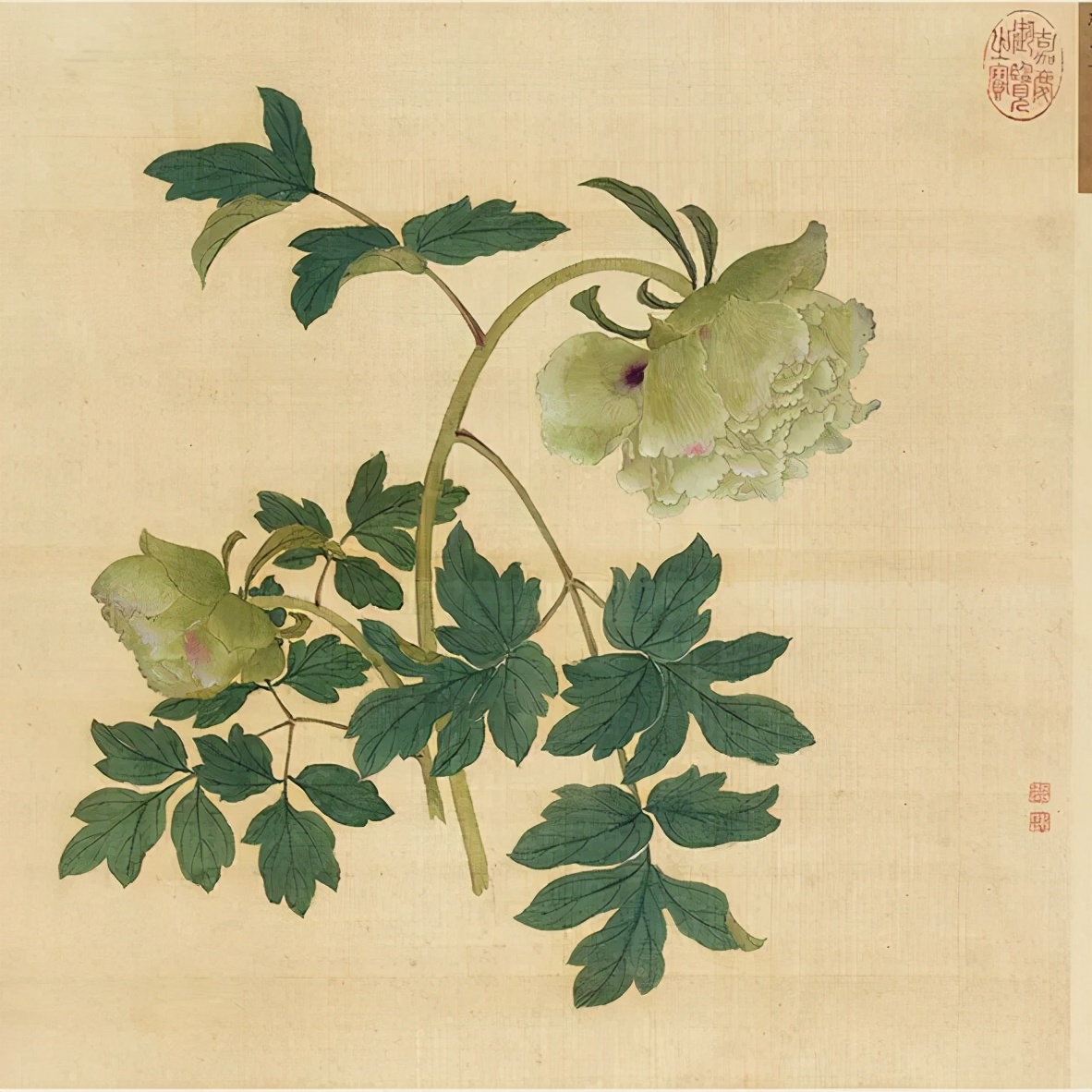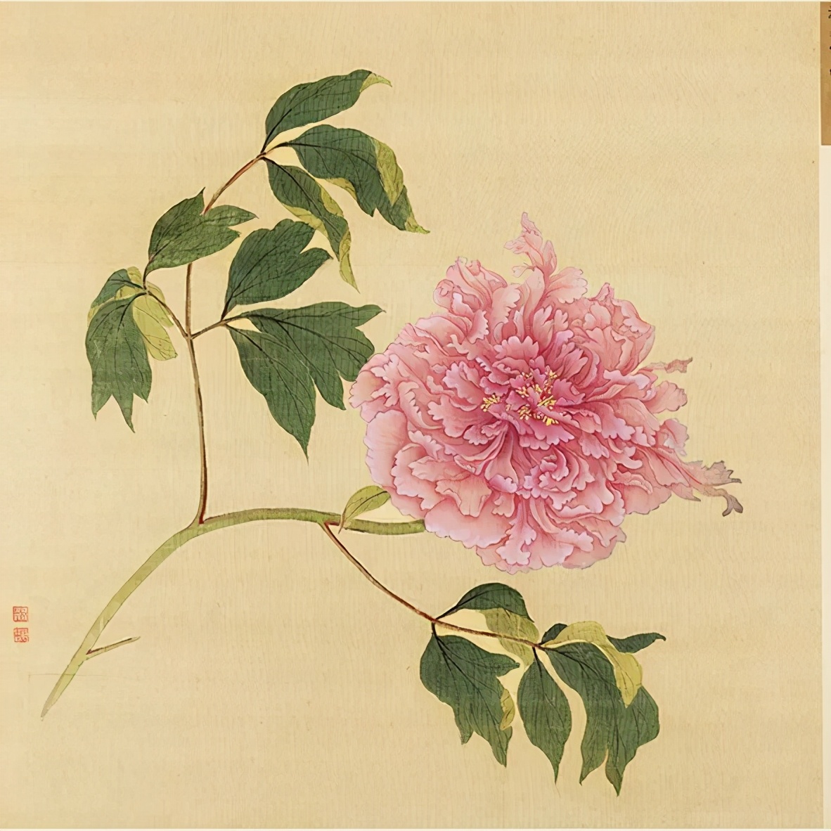 《百种牡丹谱》是蒋廷锡的代表作,在技法上承袭了恽寿平的没骨花鸟画一派风格,同时也具有相当浓厚的宫廷画的表现,可以让我们能够明确的感受到当时宫廷画师的绘画水准。