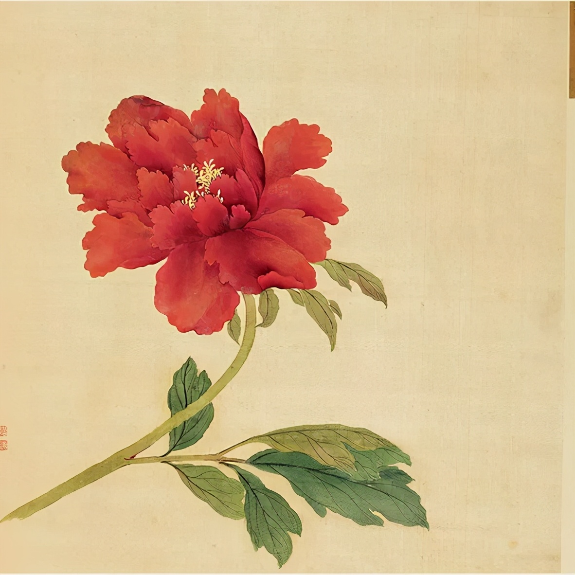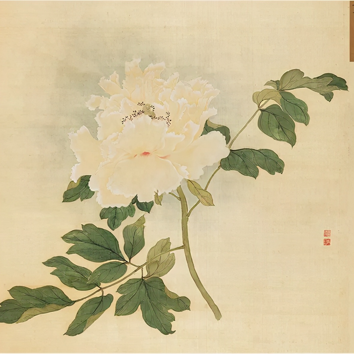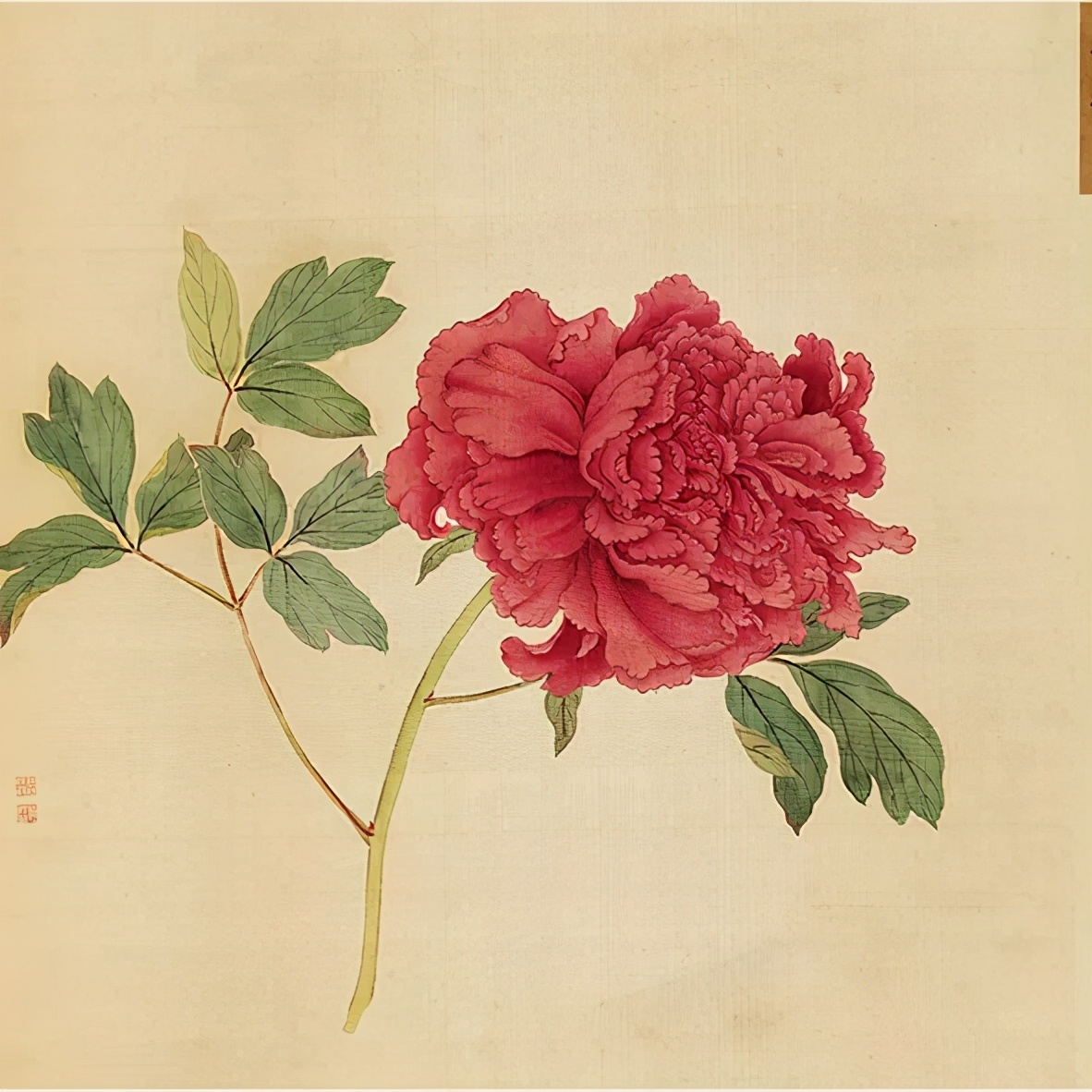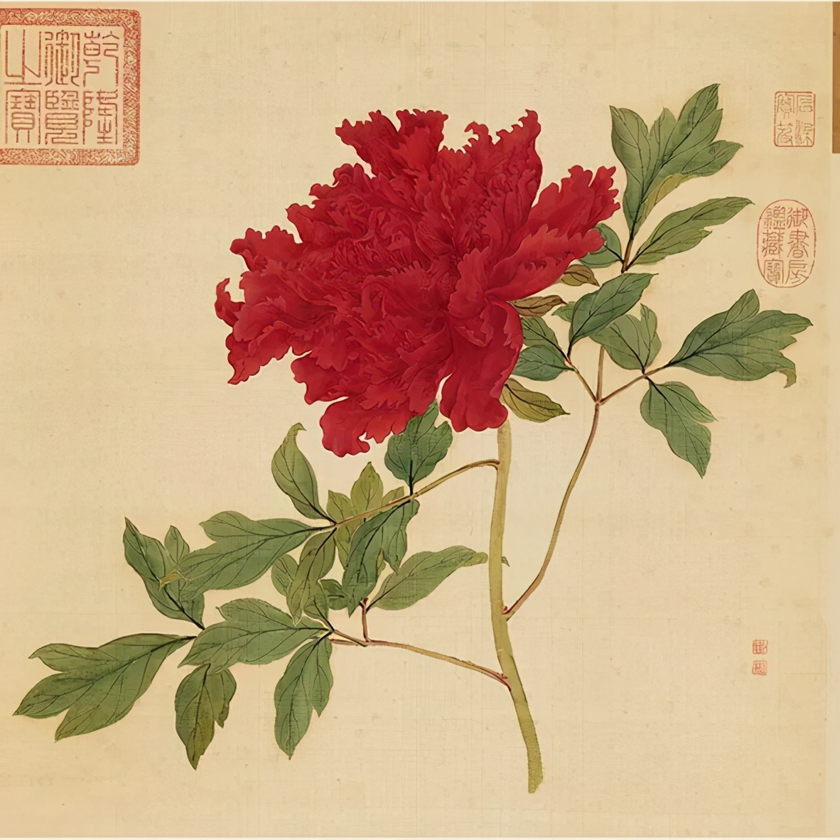 《百种牡丹谱》是蒋廷锡的代表作,在技法上承袭了恽寿平的没骨花鸟画一派风格,同时也具有相当浓厚的宫廷画的表现,可以让我们能够明确的感受到当时宫廷画师的绘画水准。