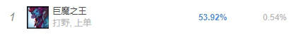 巨魔在10.7版本强势崛起,胜率达到了53.92%而等常率达到了0.54%,强势拿下上单胜率第一。是新版本绝佳冲分首选。