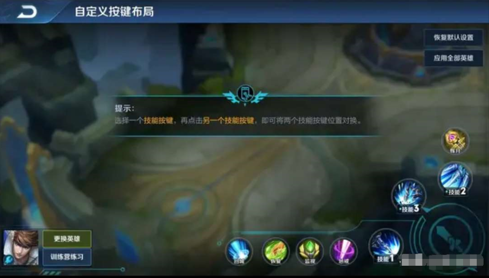 在游戏设置里的布局设置中,打开自定义布局,将二三技能换一下位置。