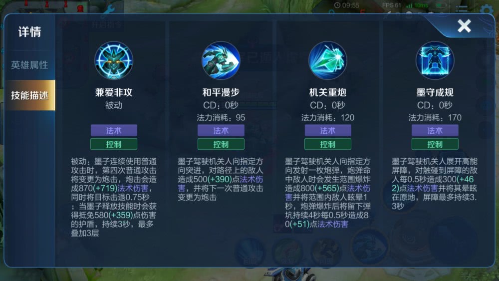 可以看出墨子不管是被动还是技能都是有控制效果的,可以算是“控制界”数一数二的了。