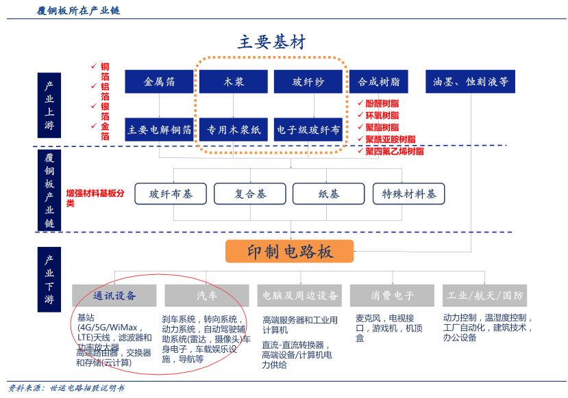 覆铜板是PCB(印制电路板)制作过程中的基板材料,下游涵盖了汽车、通信、工控、家电、消费电子、医疗、军事/航天等多领域。其中汽车、通信应用占比较高,也是生益科技收入增速最快的子领域。