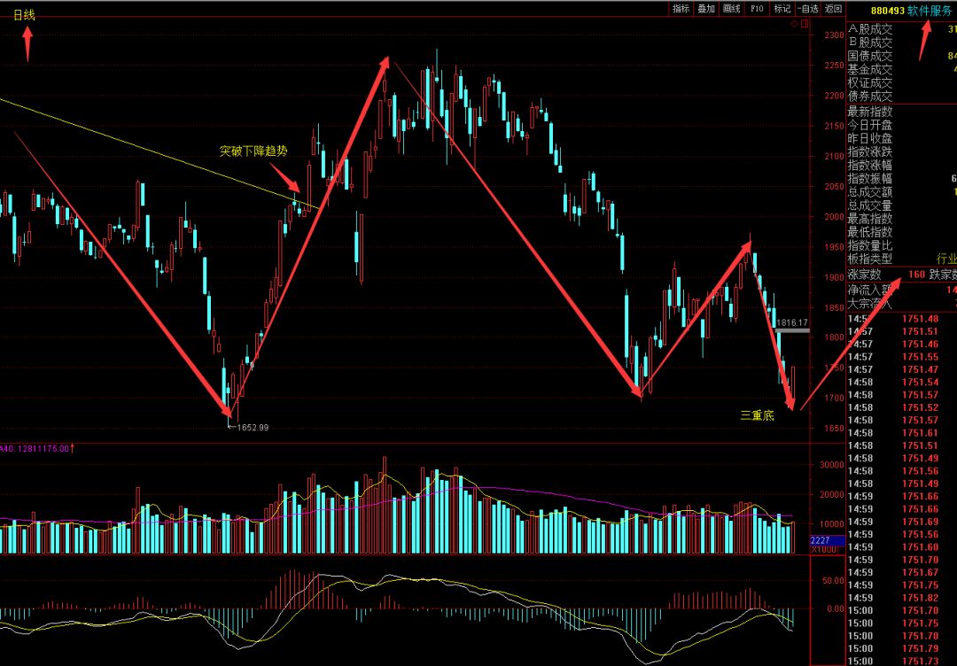 4、软件服务板块:“易华录、海联讯、创业软件”今日涨停,出现板块效应;软件服务指数日线级别,在今年3月份已经突破下降趋势,短期回调没破1652点,强于创业板指数,有构筑三重底的迹象,可以关注该板块的个股。