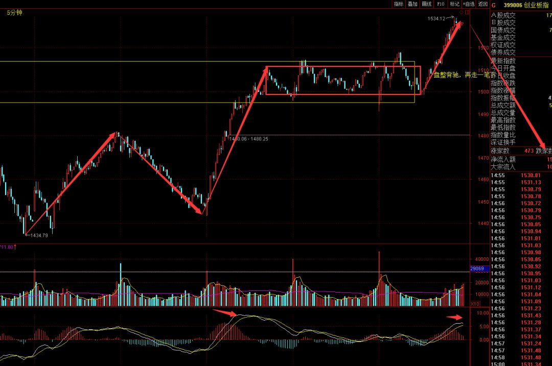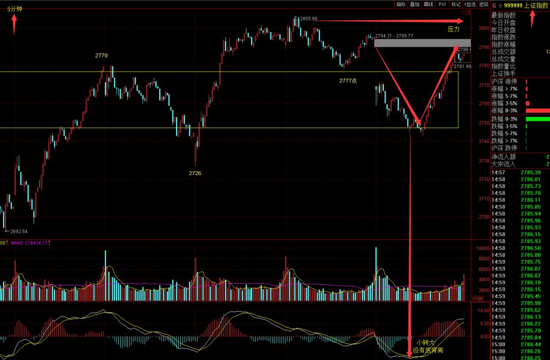 创业板指:创业板指期待的一笔下跌没有出现,今日下跌仍是在平台整理区间,下午的上涨,突破盘整平台,现在看有可能在盘整背驰结束后,再走一笔下,关注盘整背驰何时结束。创业板日线级别,两天缩量上涨,要防阴线回踩。