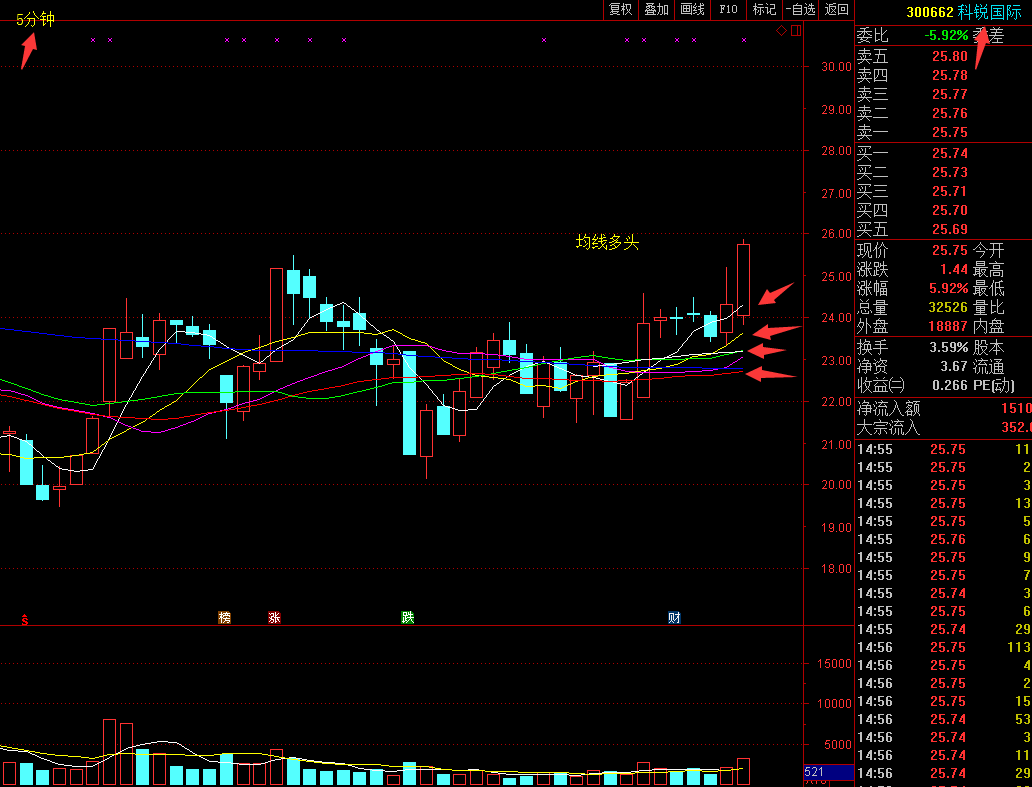 2、留意个股:科锐国际(300662),该股符合均线多头。