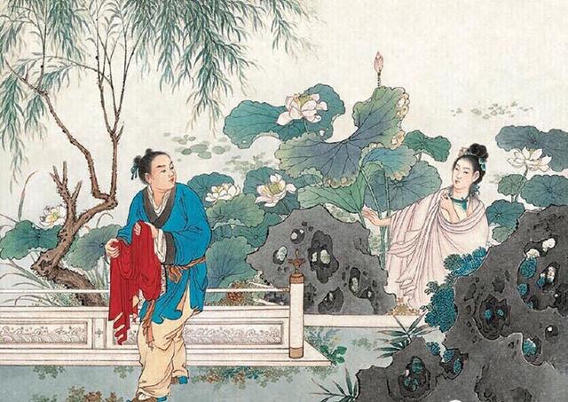 6.牛郎又惊又喜,忙上前将织女的红衣白素裙紧紧抱在怀里。众仙女吓得忙跳上岸,穿衣飞升而去。织女无衣裙,羞得立在荷花间,答应了牛郎到人间成婚的请求。
