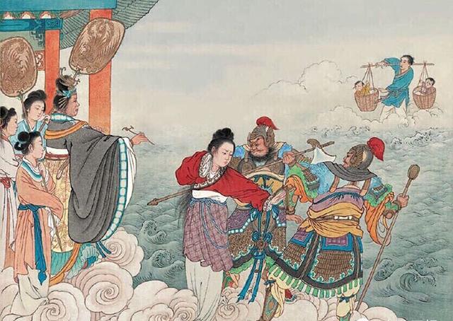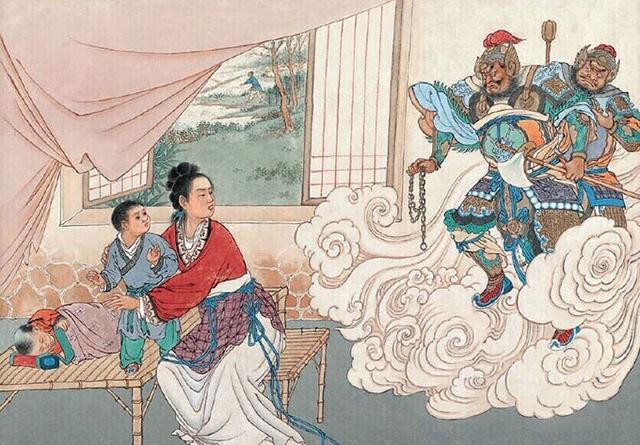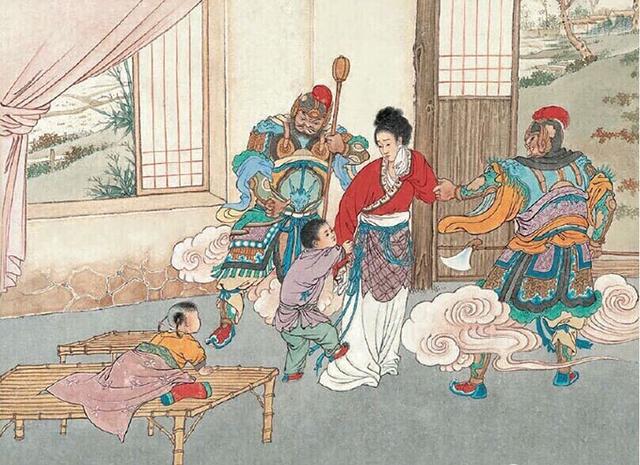 10.忽一日,王母娘娘闻得织女已到下界与牛郎成婚,心中大怒,即刻派金甲二神到人间将她捉拿归天。此时牛郎正好不在家,这可急坏了织女。