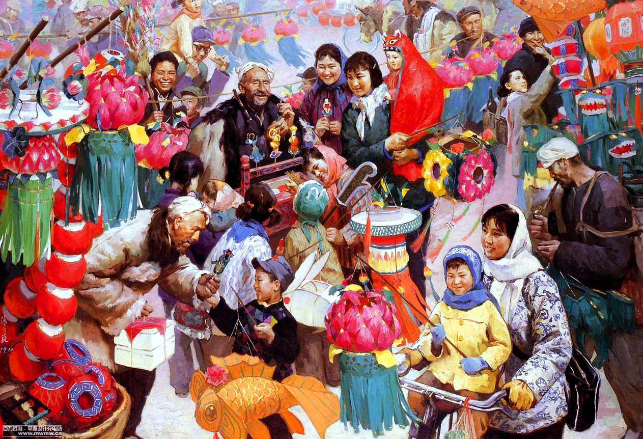 花灯迎春(布面油画) 蔡亮 张自薿 1979年