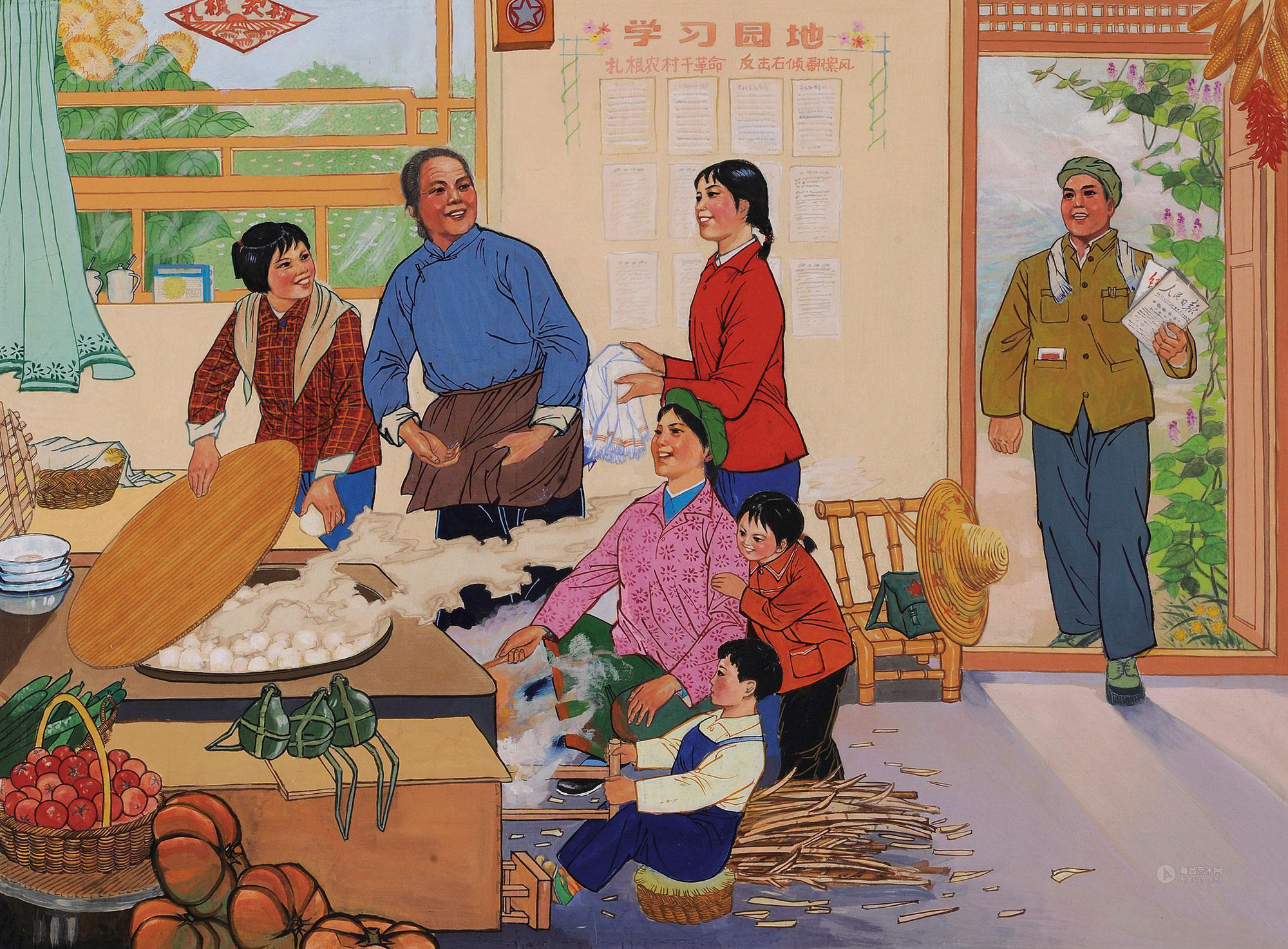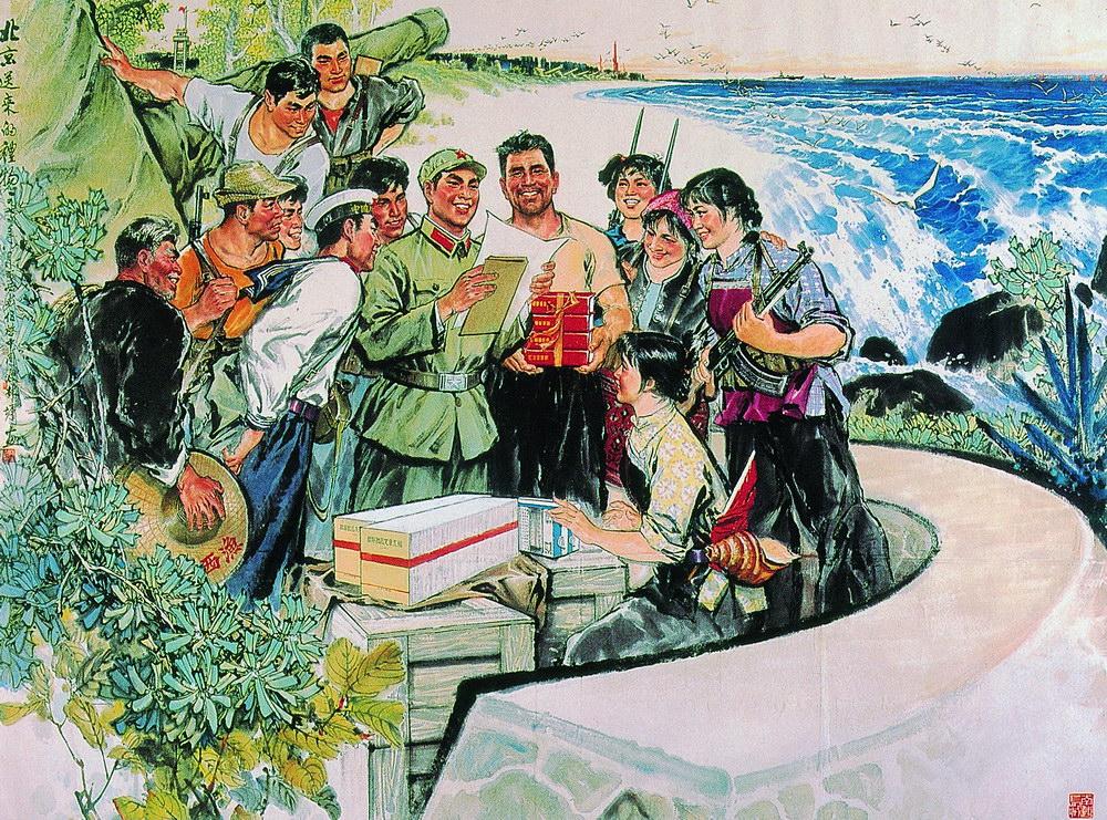 北京送来的礼物(国画)林墉 周波 伍启中 1974年