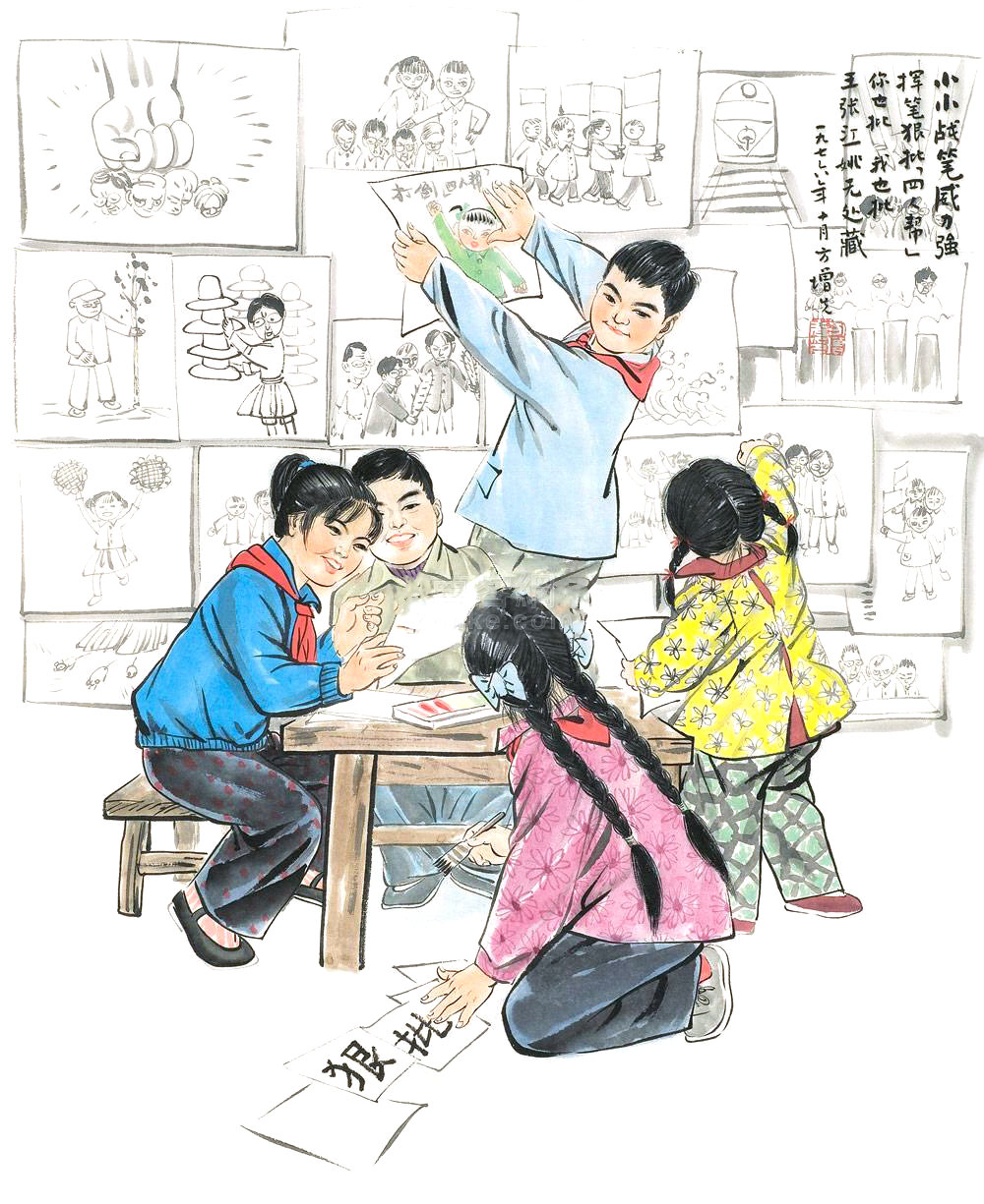 深入批林批孔搞好教育革命(纸本 水粉)