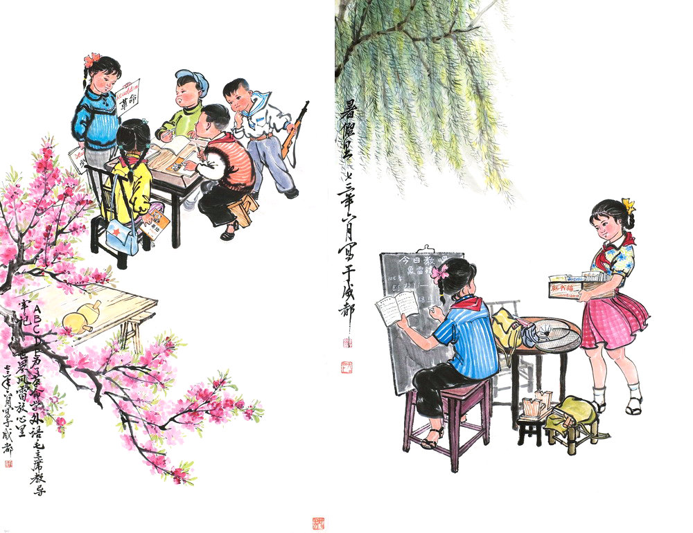 好好学习 天天向上(共二幅)(设色纸本) 蒋仲文 1972-1973年