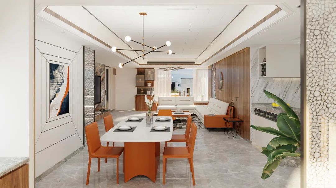 在客厅这个重点活动区域,可以打通客餐厅,增强空间的开放性与包容性,得到更加宽敞明亮的视觉观感,也同时也扩大了活动区域。