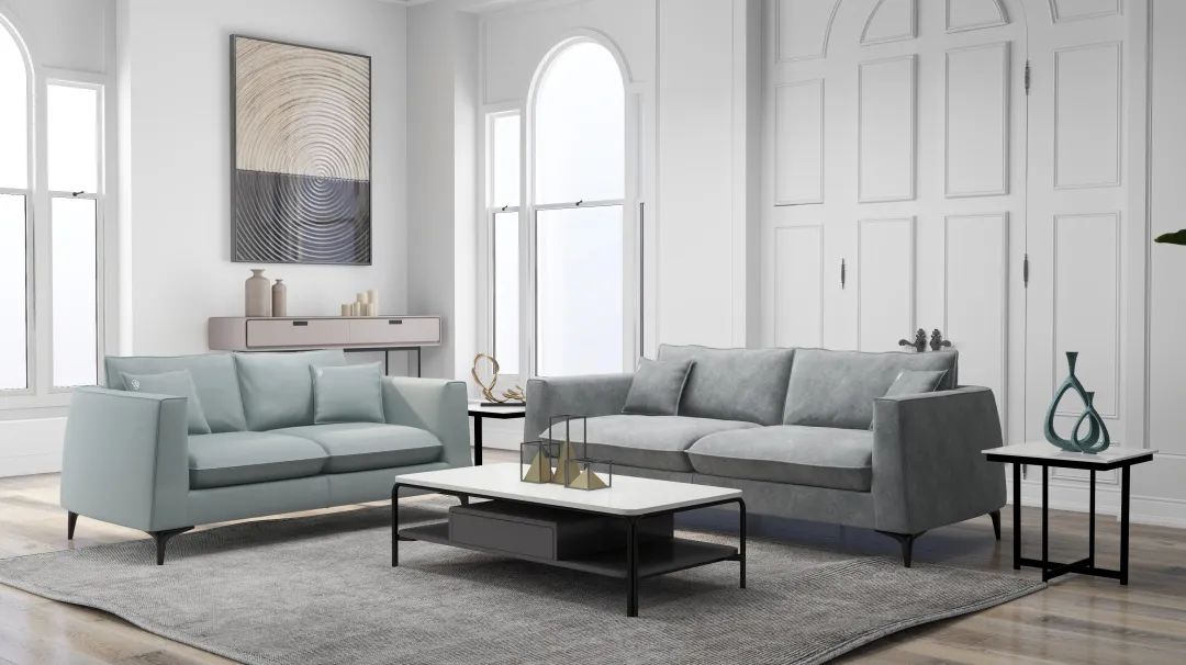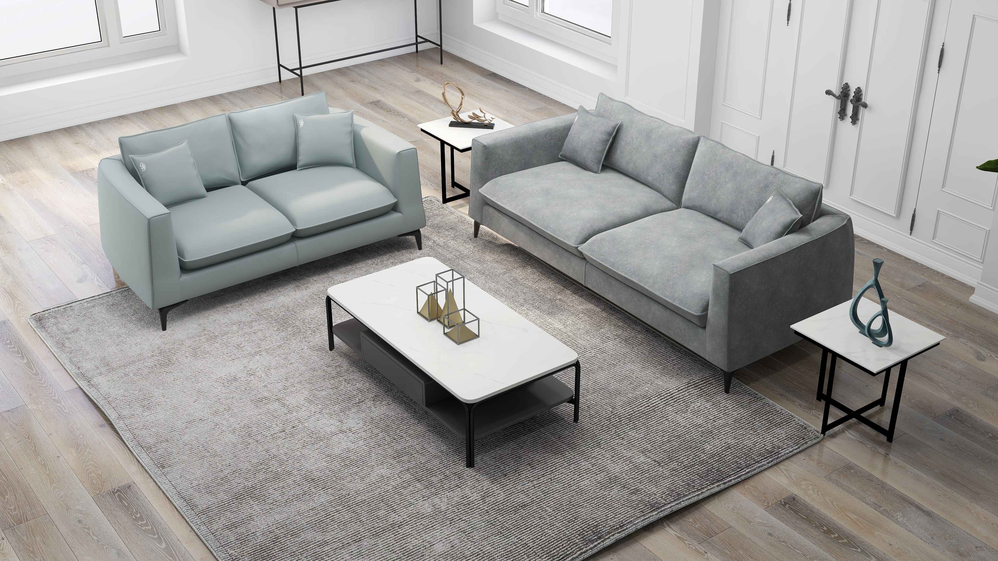 捕捉春天的发芽瞬间,一抹微绿悦目赏心,沙发的绿与灰在空间中自然融合、过度。二人位随意围合对摆,一展小巧灵动之姿。