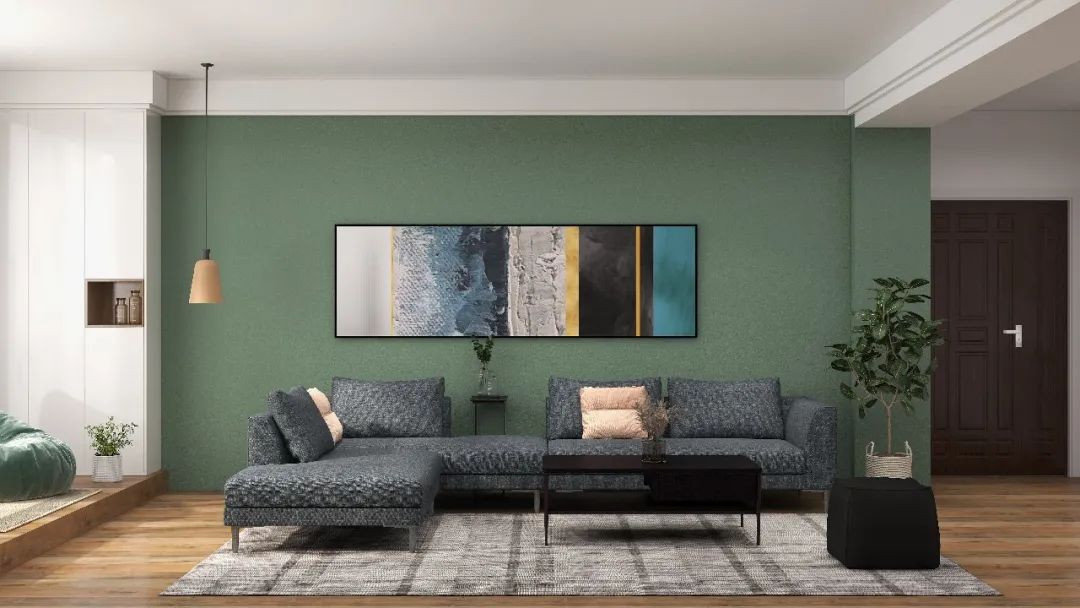 素雅的树梢绿,奠定自然而沉静的空间意蕴,高级灰色系沙发静立,传递优雅气息,彰显品味,等待阳光入室,光影交错中感受春日美好。