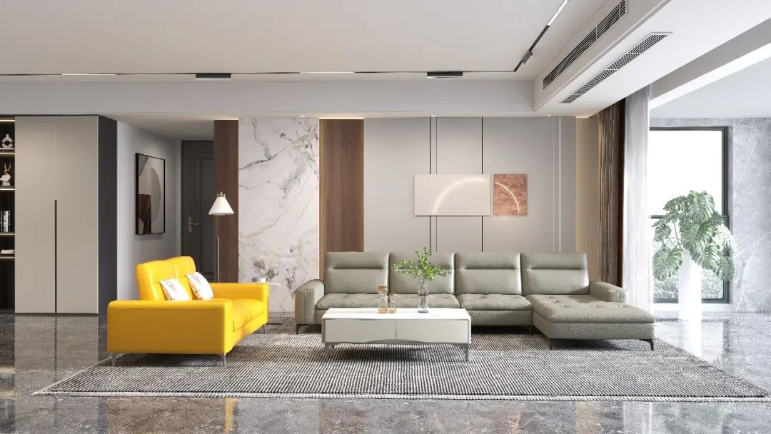 米白色系沙发,气质淡雅清新,浅色空间因此愈加纯净明快,营造轻松氛围,如春日晴好时的细软云朵,给人闲适飘逸之感。