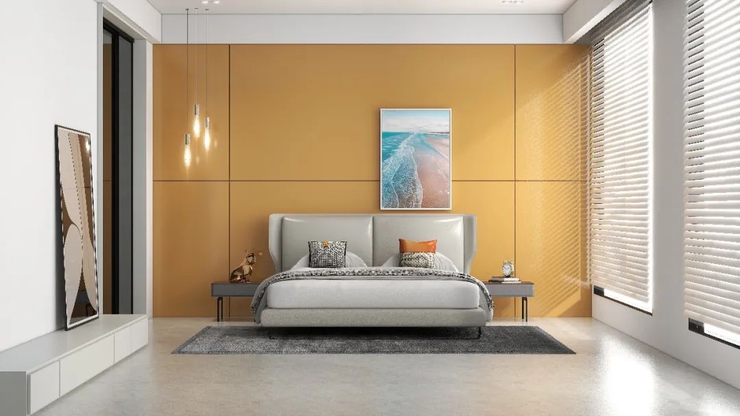 软床的米灰色铺陈,为空间镀上一层皎洁月色,大片低饱和度化迎春,沉淀出低调温婉的韵致,静与净共生,随时开启一场春日梦境之旅。
