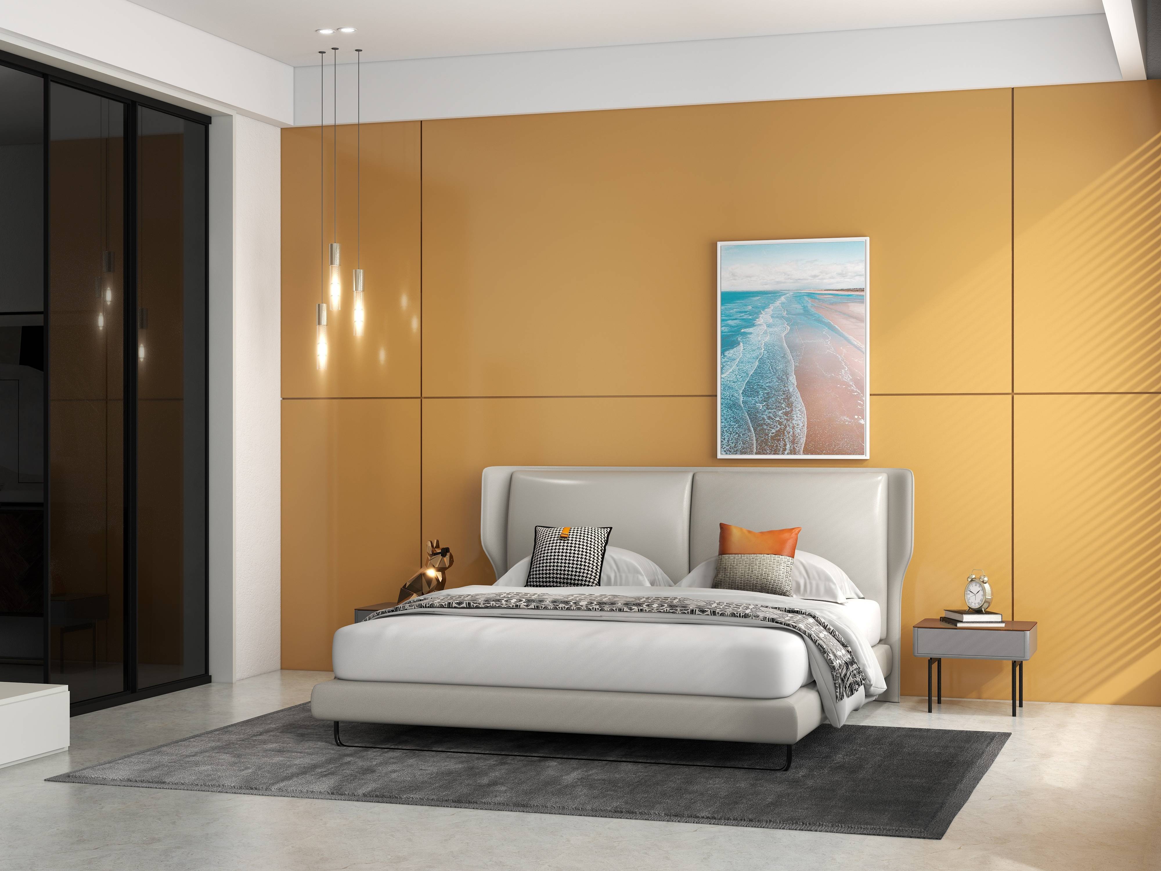 琴键式床屏设计,别致新颖,悦现时尚质感,中部加以拉点式点缀,彰显整体立体美感,丰盈饱满的填充,舒适加持,美梦如期。