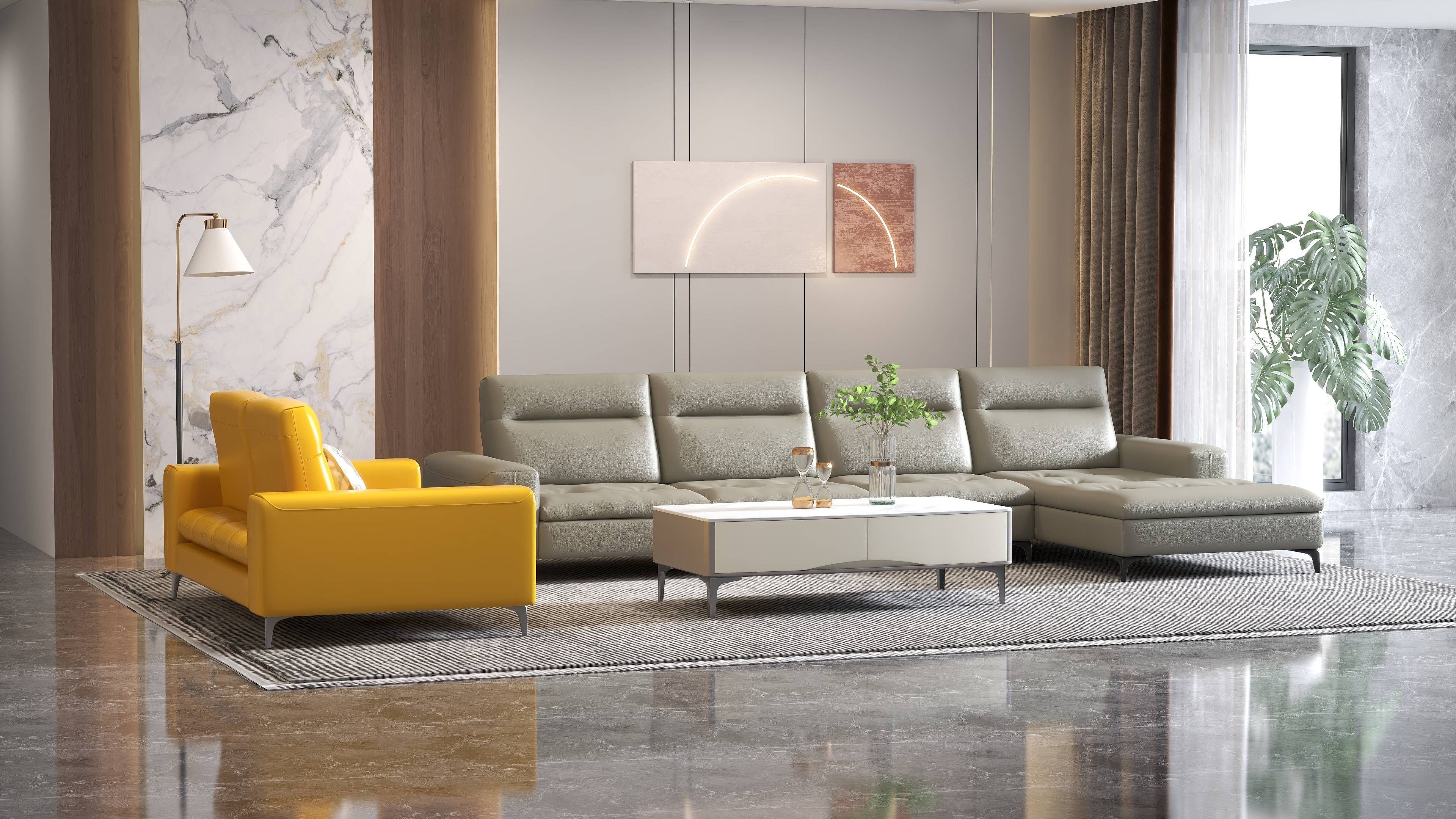 沙发线条简洁明快,勾勒出舒阔大气的艺术之美,双层靠背设计,靠包可移动,舒享自在的休闲时光,高脚支撑,通透空间更便捷打扫,诠释生活美学。