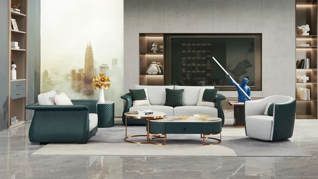 CBD家居·SHEAI | XS001沙发,外形呈现简约的美感,别具设计感的沙发外框更以气质取胜,古典绿的设色、略带复古的纹理、弧线形扶手,增添几分艺术气息,与轻奢风空间气场共融。