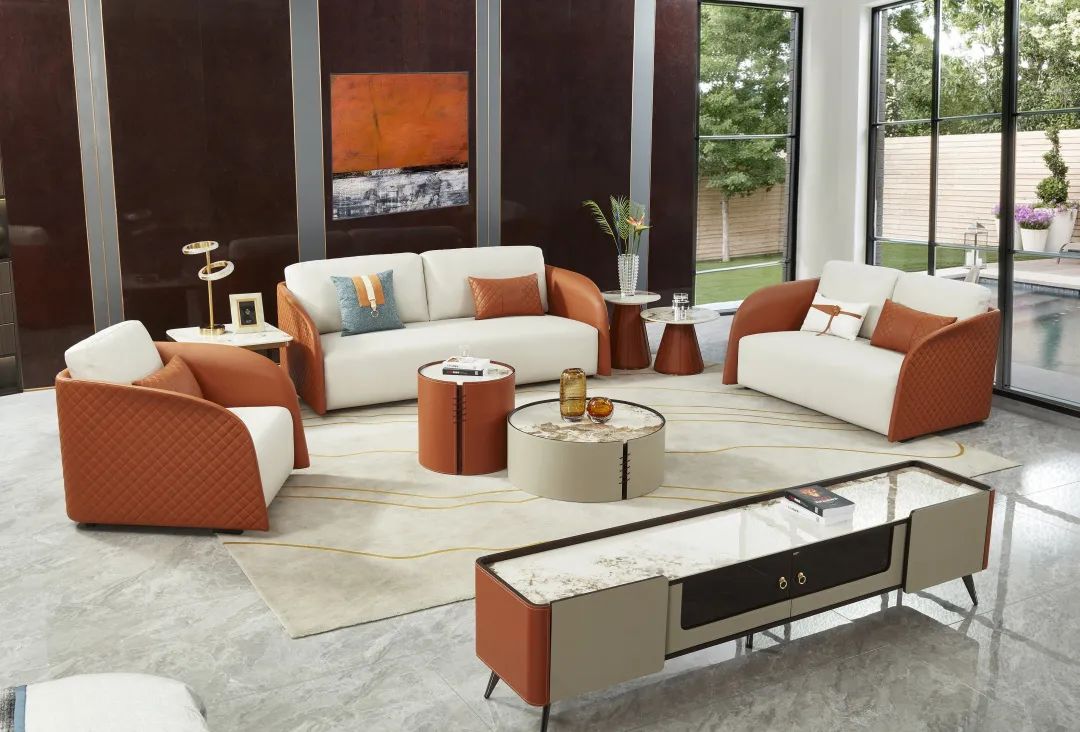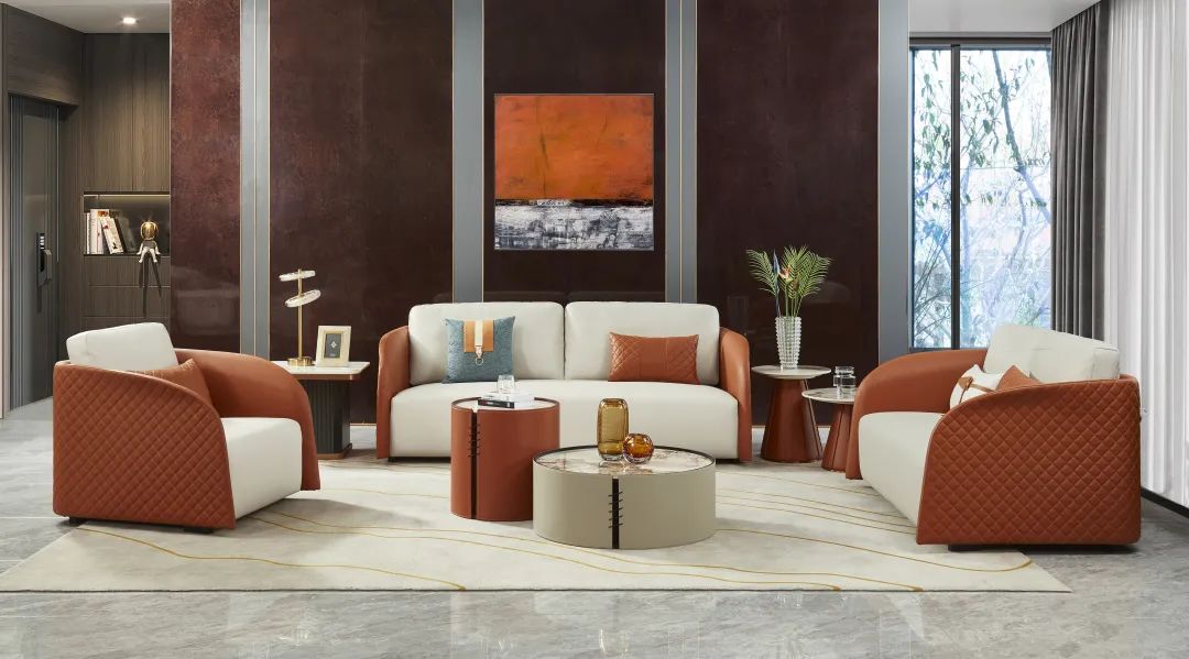 以色彩意象演绎轻奢,CBD家居·SHEAI | XS007沙发,爱马仕橙色具有张扬的时尚魅力,米白色的中和下空间呈现出温润质感,气韵静雅坚定。