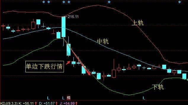 第二种:K线运行在布林线中轨和上轨之间的区域。只要价格不跌破中轨线,那么就说明市场是处于多头行情中,所以投资者考虑的应该就是逢低点买进,但是也是要跟随市场而定的,向上图中股价跌破上轨进入到区域的话,就是做空的行情走势。