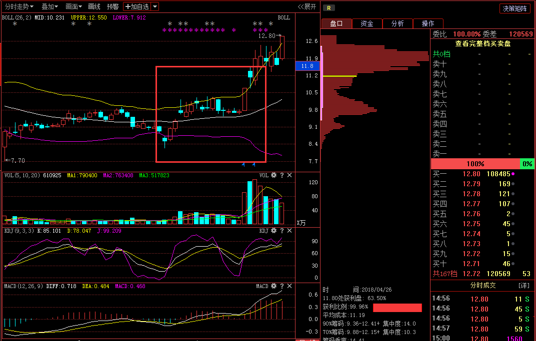 其二是布林线开始开口时要有明显的大的成交量出现。