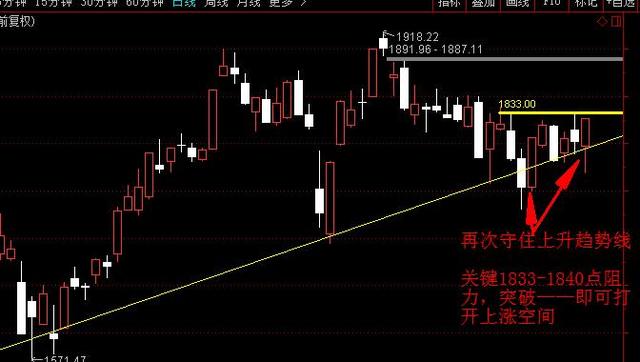 而创业指数不一样,周三创业板指直接以一根中阳线重新回到1820点以上,既稳住了上升趋势线支撑,也以中阳线站稳了1800-1820点的密集成本区;这就一举扭转了弱势局面,如果随后创业板指数阳线站稳1833点,那么创业板指就完全形成了短期底部,有望进一步向1900点一线上涨。