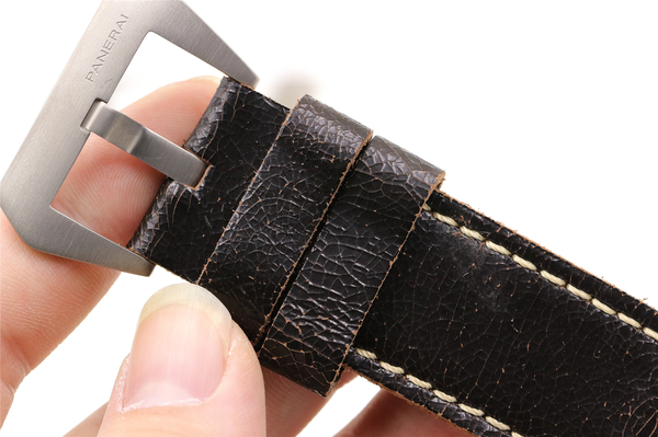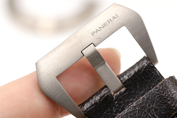 表带进口牛皮,针扣同样有PANERAI的刻字。