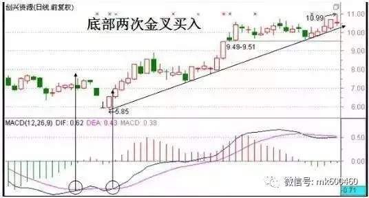 (3)“MACD低位二次金叉”,如果结合K线形态上的攻击形态研判,则可信度将提高,资金将更容易下决心介入。