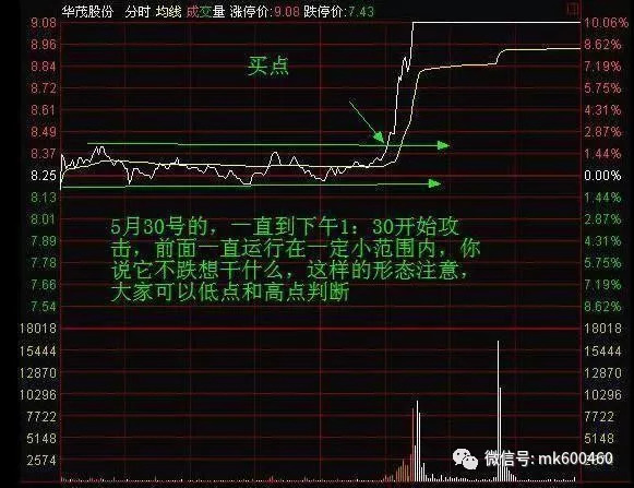 4、买点:当股价探底回升后,高于开盘价是第一买点,涨停介入是第二买点,当天没有涨停的应到收盘时再买。