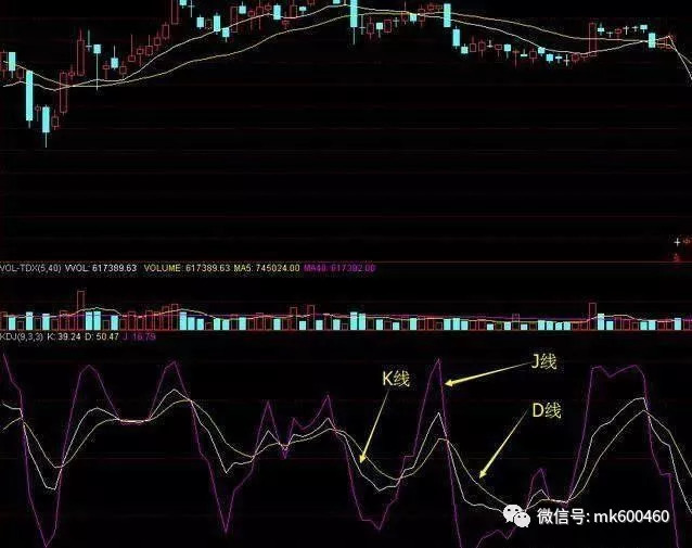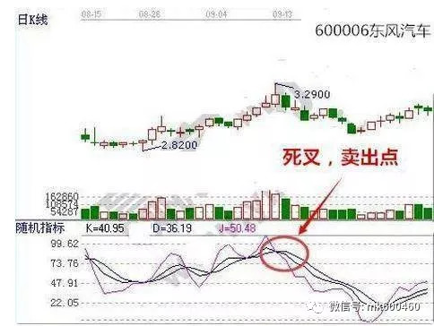 2、K线由上向下穿过D线为死叉,通常为卖出信号。