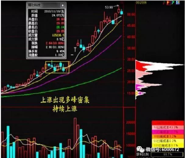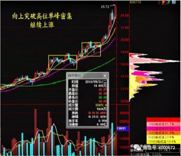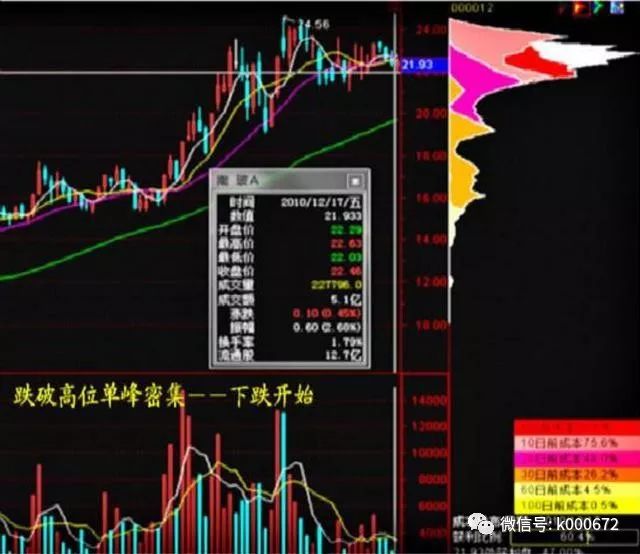 注意要素:并不是所有的跌破原密集区都是坏事,要看成交配合,缩量回调跌破,原峰是不会减少的,也就是主力不会扔掉筹码。