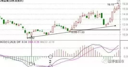 DIF上穿DEA形成了金叉,能量柱由绿翻红,这个位置可以抄底,但是逃不掉MACD的滞后盲点。