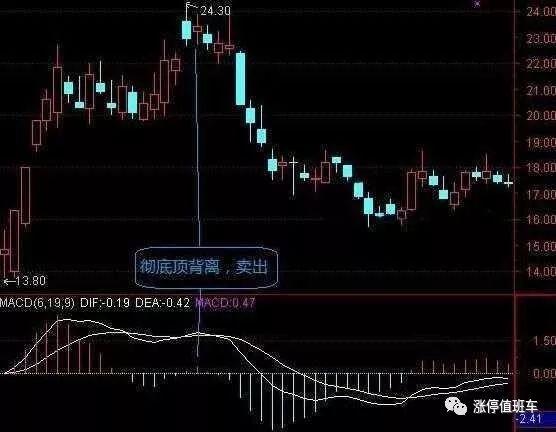 股价大涨而最近的红柱子越来越小,绿柱子越来越大,表明顶部背离,是卖出的时机到了,不然会忍受巨大的亏损。