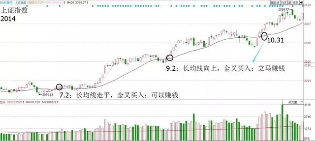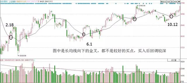 长均线向下的金叉买入,不是最好的买点或者被套。