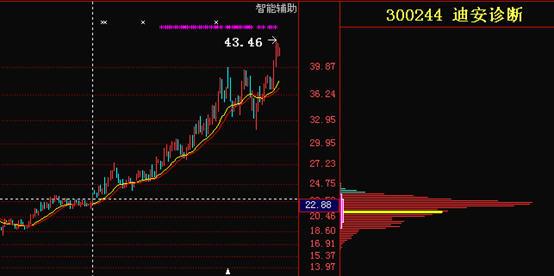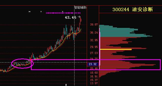 如 图,这是300244迪安诊断在拉升前和拉升后的筹码分布图。上图是2013年2月初,当时筹码是典型的单峰高度密集,说明吸筹到位,准备开始拉升,下图 就能看到。
