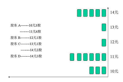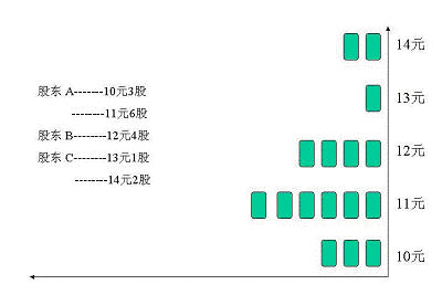 我们先做这样一个假设:某公司有16股股票,这16股被3个不同的投资者持有。A曾在10元买过3股,而后又在11元买了6股;而B则在12元买进了4股;C,在13元买了1股,在14元持有2股。把这3位股民的股票加起来,正好是16股。