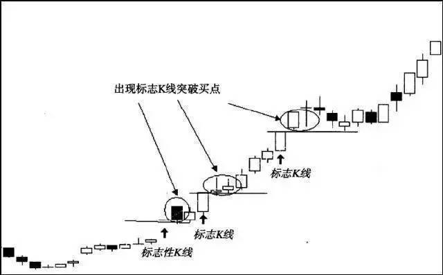 (4)如上图该股,分别出现了三根标志性K线,此后两天股价都没有跌破这根标志性K线的最高价,视为突破标志性Κ线,出现标志K线突破买点。