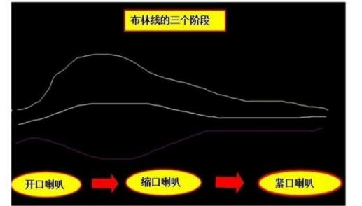 布林线BOLL指标的使用方法和喇叭口形态的喇叭口的用法主要是依据布林线上、中、下轨线三条线的方向走势来判断股价的走势一种方法,可以分为三种情况:开口喇叭、缩口喇叭、紧口喇叭布林线的运动规律。