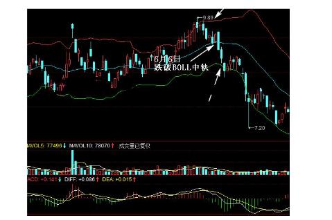 当BOLL喇叭口敞开的同时,如果股价跌破了BOLL中轨,就说明了股价将加速下跌,此时投资者应该尽快卖出手中的股票。