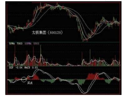 下面我们以太极集团(600129)为例进行说明,在2001年4月9日,该股KDJ指标在50中轴区域附近出现了金叉。按照KDJ指标的操作原则,在50中轴区发生的交叉,其信号并不确定,但如果结合BOLL指标进行分析,可能就会得出一个明确的结论。该指标在同一天,股价线越过了MB线的压制,此时股价线距离上档的UP线还有一段空间足以使操作者获利。依据这一原则,我们可以重视KDJ指标的这一次交叉,予以短线买进。