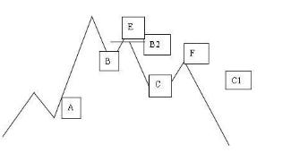 向下跌破B点,开空头。止损以C点为准。