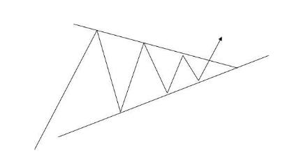 与平台整理突破相近,都是市场越盘越窄,到最后选择方向突破。高点不断降低,低点不断抬高,高点和低点能连成短期趋势线,呈窄幅收敛状。