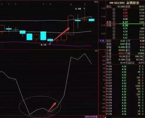 我们看上图CCI指标,底部超卖区形成一个“w”形状,筑底成功,再看箭头方向CCI强势反弹,说明股价已经探底成功,给出一个强烈的买入信号,散户应该及时在此处建仓或者加仓来获取盈利。我们看k线图,股价在短期内确实强势反弹涨了百分之十左右。
