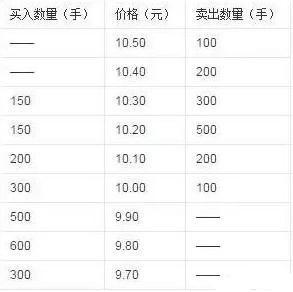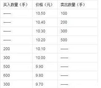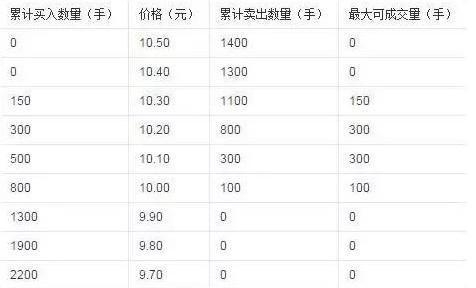 3)产生最大成交量的价位有两个:10.10元、10.20元,成交量均为300手。若在上交所则选取中间价10.15元;若在深交所则选取离上日收盘价10.13元最近的价位10.10元。集合竞价之后的委托报价队列情况,如下表3。