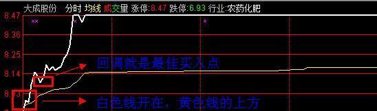 1)当白色线开在黄色下线下方时,首先会突破分时图的黄线,再回调跌破蓄势,当再次上冲,突破分时图的黄线时,就有很大概率选择出一只涨停股。
