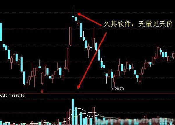 第二:先见天量后见天价,也叫天量天价。注解:可以是当天见到天价,也可以是随后见到天价,都没有什么问题。一般情况下天量伴随着高换手就意味着卖点,短期的高位形成。