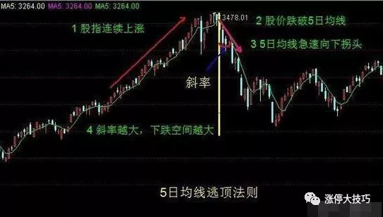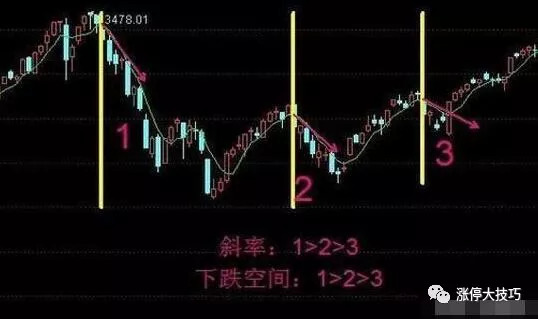 a、逃顶法则:攻击线高位拐头向下,斜率越大,下跌空间越大,坚决止损!